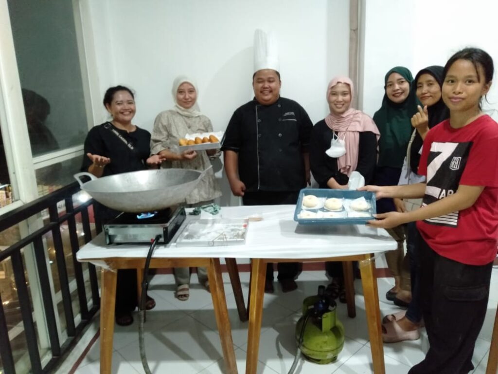 Para peserta dengan antusias mengikuti setiap tahapan pelatihan—mulai dari pengenalan bahan, proses pembuatan adonan, teknik menggoreng, hingga penyajian donat dan kue. Selain itu, Chef Sam juga membagikan cara menghitung modal dan menentukan harga jual, yang menjadi aspek penting dalam membangun usaha kuliner.
