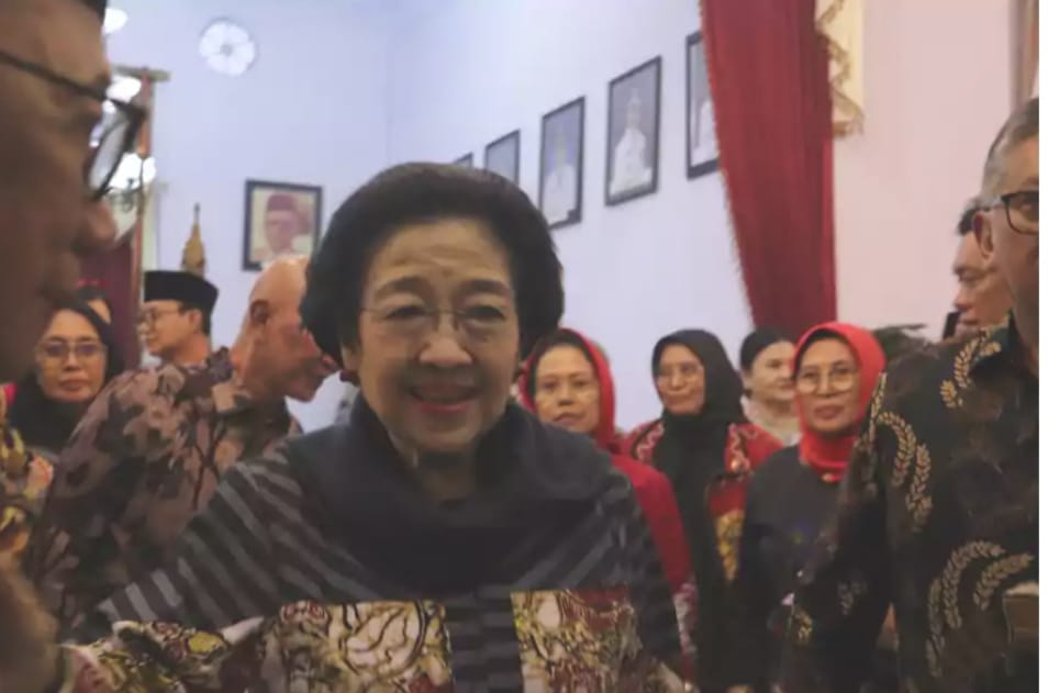 Megawati Soekarnoputri tiba di perpustakaan Bung Karno pukul 09,45 dia menggunakan baju merah merah