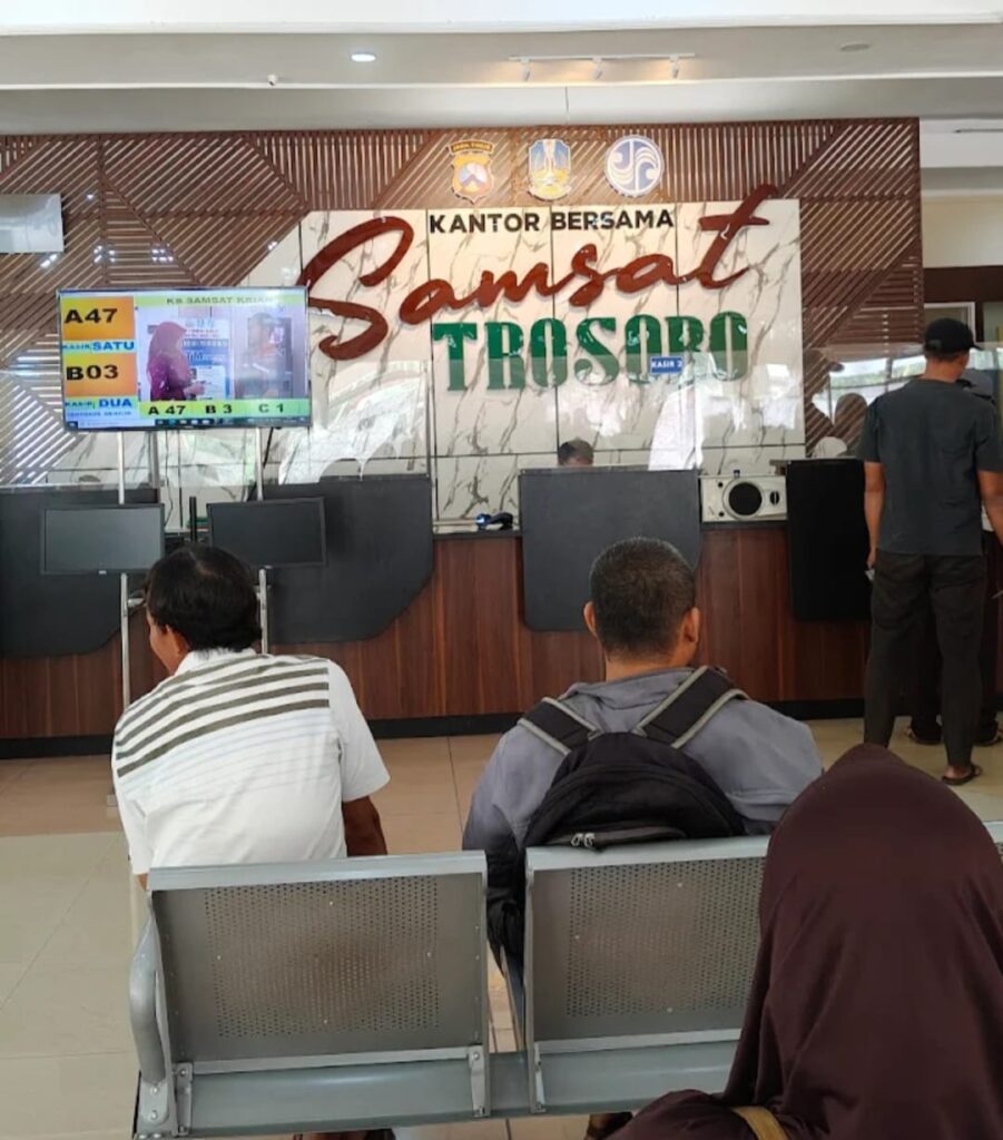 Awal setelah menyelesaikan proses pengurusan. Setelah proses administrasi selesai, wajib pajak juga diarahkan untuk mengambil Di tunggu di depan loket Di dalam Ruang Ac pelat nomor kendaraan sebelum melanjutkan perjalanan.