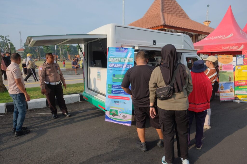 Polantas Menyapa di CFD Polresta Sidoarjo, Warga Antusias Urus Pajak Sambil Olahraga